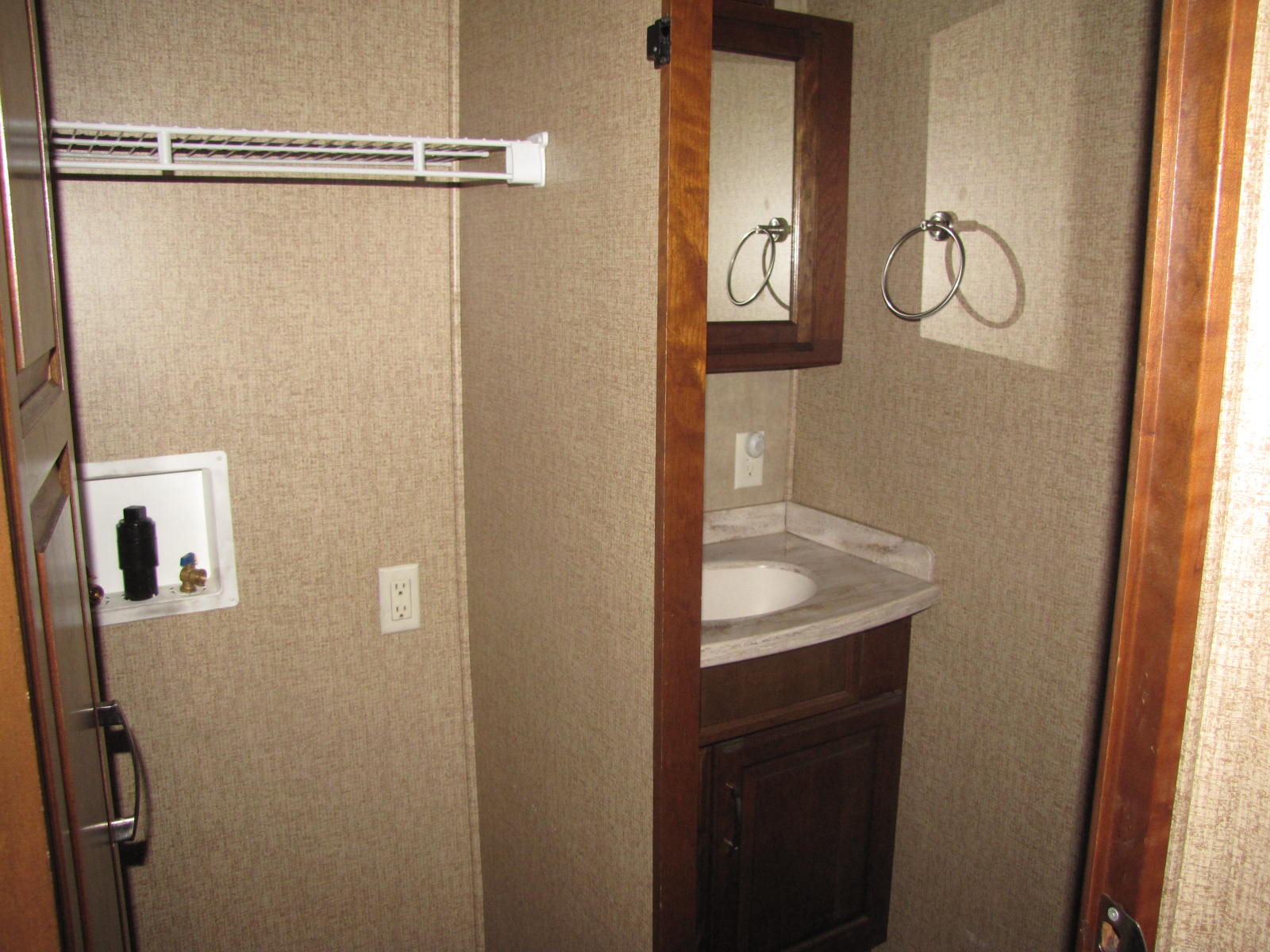 PRICE drop!!! RV VALUATION IS OVER $79,900.00!!! BUILT FOR FULL FOUR SEASON LIVING, THIS LUXURY FIFTH WHEEL HAS 4 SLIDE OUTS, 2 POWER AWNINGS, BLACKOUT PRIVACY WINDOWS AND AN OUTSIDE ENTERTAINMENT SYSTEM. INSIDE THE FRONT DOOR IS A CONVENIENT COST CLOSET. THIS UNIT HAS A CENTRAL VACUUM SYSTEM AND ONE TOUCH DAY/NIGHT SHADES. IN THE MAIN LIVING AREA IS A WATER CLOSET WITH WASHER/DRYER HOOK UPS. THE KITCHEN COMES EQUIPPED WITH A 3 DOOR FRIDGE/FREEZER, A 2 BURNER CONVECTION COOK TOP, A CONVECTION/MICROWAVE OVEN, A DISHWASHER IN THE ISLAND AND SOLID SURFACE COUNTER TOPS. WILL SLEEP 4 PEOPLE WITH A SOFA/SLEEPER IN THE LIVING AREA AND A KING MAIN BEDROOM IN THE FRONT. THE WALK THROUGH PRIVATE ENSUITE OFF OF THE MAIN BEDROOM HAS DOUBLE SINKS, A DOUBLE SHOWER WITH A SEAT AND LINEN STORAGE. PAST THIS ENSUITE IS A WALK IN CLOSET. COME SEE THIS BEAUTY AND CALL RV PETE FOR MORE DETAILS AT 506-260-2666. FINANCING OPTIONS AVAILABLE, O.A.C. OPEN EVERYDAY!