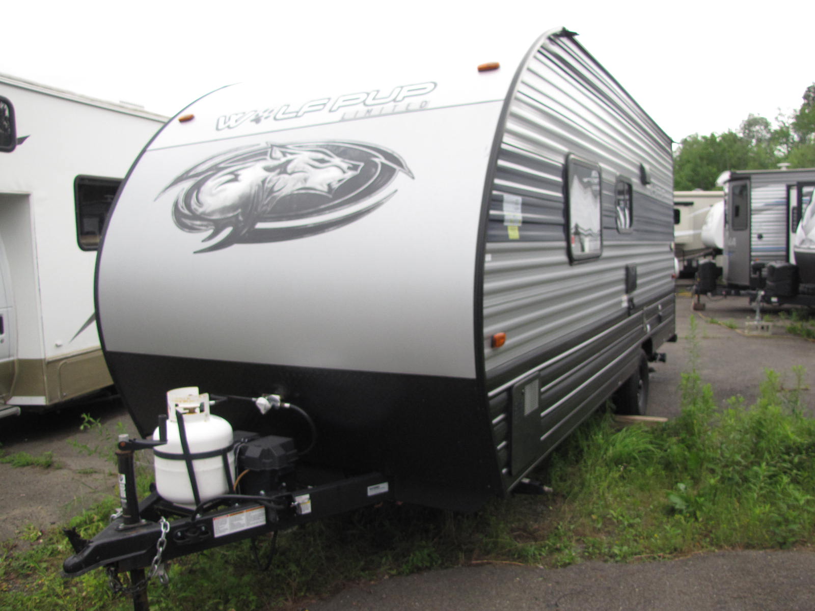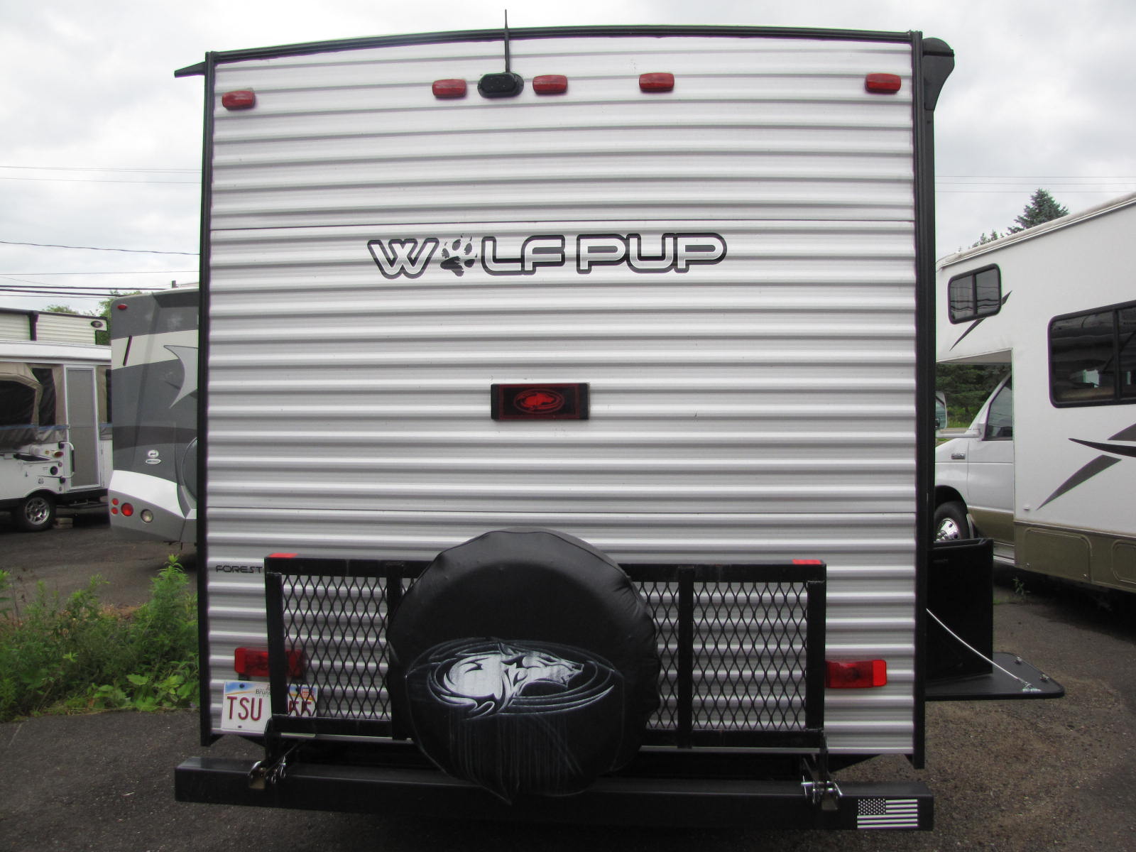 Price drop!!! Was $31,900.00 now ONLY $29,900.00!!! THIS, MADE BY FOREST RIVER, WOLF PUP LIMITED WAS ONLY USED A FEW TIMES AND STILL SHOWS AS NEW. EASY TO TOW WITH NO SLIDE OUTS, SIXTEEN FEET LONG AND A U.V.W. OF ONLY 3172 POUNDS. OUTSIDE HAS, A POWER AWNING, UNDERBELLY STORAGE, OUTSIDE SPEAKERS, TV MOUNT, SPARE TIRE, BACK UP CAMERA AND A REAR CARGO RACK. ENJOY A COLD DRINK FROM YOUR OUTSIDE FRIDGE/FREEZER. NO CARPETING INSIDE AND QUALITY FABRIC WINDOW TREATMENTS. THE KITCHEN HAS SOLID SURFACE COUNTER TOPS, A SINGLE ROUND SINK, A DOUBLE DOOR FRIDGE/FREEZER, A TWO BURNER STOVE WITH RANGE HOOD AND A MICROWAVE OVEN. WILL SLEEP THREE PEOPLE WITH THE FRONT QUEEN FOLD DOWN CONVERTABLE SOFA AND MATTRESS AND A FOLD DOWN DINETTE. COME CHECK OUT THIS CUTIE AND CALL PETE AT 506-260-2666. FINANCING OPTIONS AVAILABLE, O.A.C. AND WE ARE OPEN EVERYDAY!