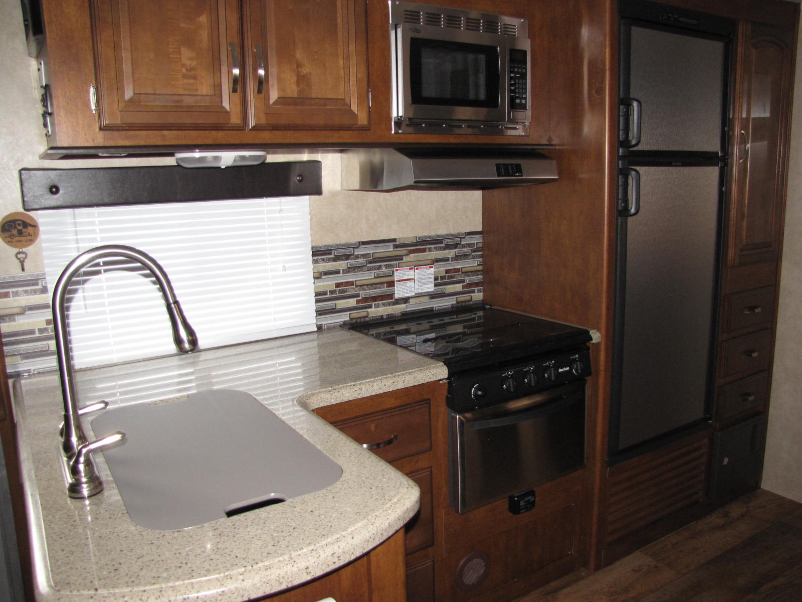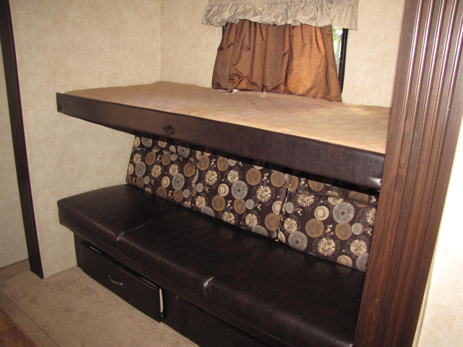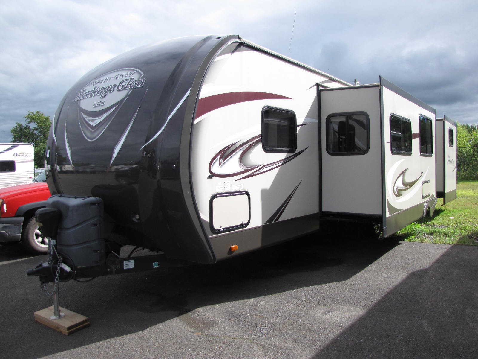 Price Drop!!! Was $38,900.00 Now ONLY $34,900.00!!! THIS IS THE WILDWOOD, HERITAGE GLEN LITE MADE BY FOREST RIVER. THIS FAMILY CAMPER HAS A U.V.W. OF 7688 POUNDS. TWO SLIDE OUTS, POWER JACKS ALL AROUND AND A POWER AWNING. IN THE OUTDOOR KITCHEN IS A SINK, FRIDGE, STORAGE AND BUMPER MOUNTED SWING ARM BAR B QUE READY. INSIDE HAS QUALITY FABRIC WINDOW TREATMENTS AND HARDWOOD CABINETRY. WILL SLEEP UP TO TEN PEOPLE WITH A JACK KNIFE SOFA/SLEEPER, A U SHAPED DINETTE, TWO SINGLE UPPER BUNKS AND A JACK KNIFE SOFA SLEEPER IN THE REAR BUNK HOUSE. THE MAIN QUEEN BEDROOM IS IN THE FRONT AND HAS A TV THAT SPINS INTO IT FROM THE LIVING AREA. THE FULLY EQUIPPED KITCHEN HAS SOLID SURFACE COUNTER TOPS, STAINLESS STEEL APPLIANCES AND A PANTRY. AN OUTSIDE ENTRANCE INTO THE ENSUITE MAKES FOR EASY CLEAN UPS AND HAS A TUB/SHOWER. COME FOR A LOOK AND CALL RV PETE FOR MORE DETAILS AT 506-260-2666 FOR MORE DETAILS. FINANCING OPTIONS AVAILABLE, O.A.C. OPEN EVERYDAY!!!