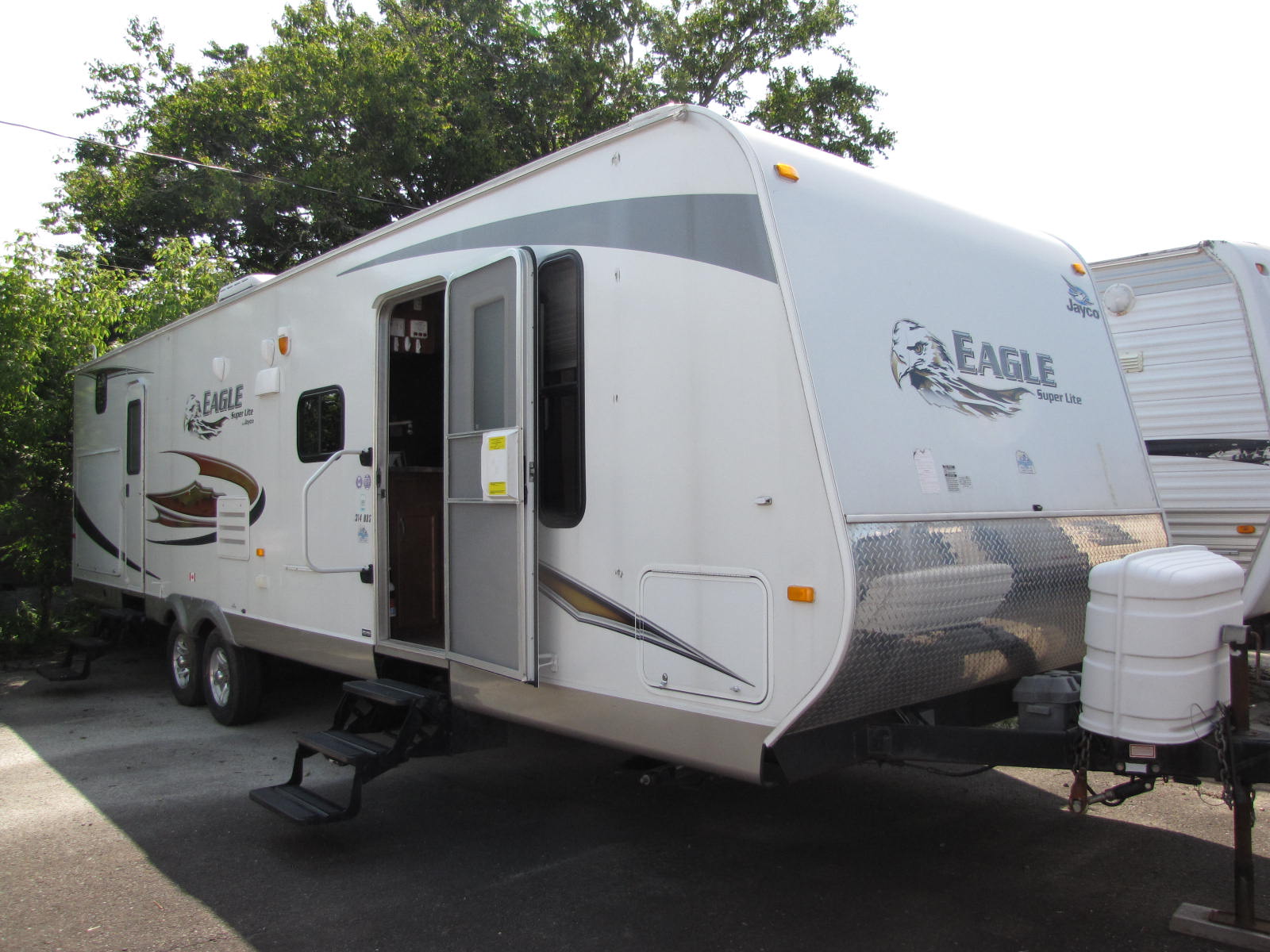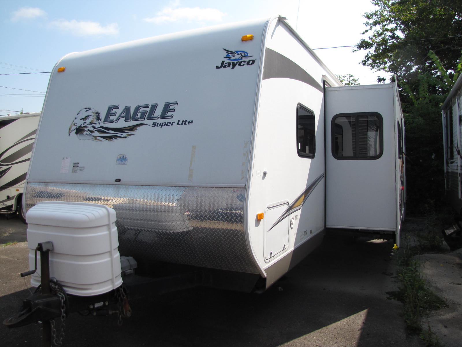 THIS QUALITY FAMILY CAMPER IS A SUPER LITE, MADE BY JAYCO WITH A U.V.W. OF 7590 POUNDS. TWO SLIDE OUTS. IN THE OUTDOOR KITCHEN IS A TWO BURNER STOVE, A FRIDGE/FREEZER, SINK AND STORAGE. INSIDE HAS HARDWOOD CABINETRY AND A SPIN AROUND TV INTO THE MAIN BEDROOM. THE FULLY EQUIPPED KITCHEN HAS PANTRY STORAGE. WILL SLEEP TEN PEOPLE WITH THE UP FRONT QUEEN MAIN BEDROOM, A FOLD DOWN DINETTE AND A FLIP OUT SOFA/SLEEPER. WILL SLEEP FOUR IN THE SPACIOUS BUNK HOUSE WITH THREE BUNKS AND A TUCK AWAY TRUNDLE BED. KEEP THE DIRT TO A MINIMAL WITH THE CONVENIENT SECOND ENTRANCE INTO THE ENSUITE THAT HAS A TUB SHOWER. COME FOR A LOOK AND CALL RV PETE FOR MORE DETAILS AT 506-260-2666. FINANCING OPTIONS AVAILABLE, O.A.C. WE ARE OPEN EVERYDAY TO SERVE YOU BETTER!!