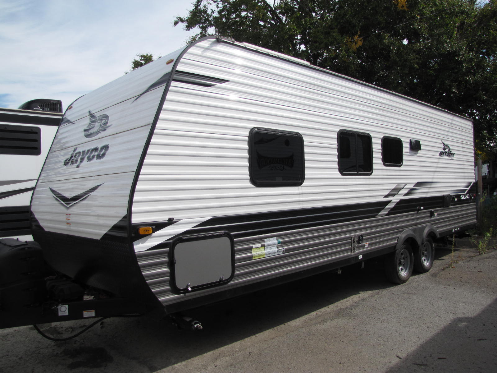 THIS QUALITY MADE BY JAYCO FAMILY CAMPER IS LIKE NEW WITH VERY LITTLE USE AND EASY TO TOW WITH A U.V.W. OF ONLY 4580 POULDS. INCLUDES ALL THE EXTRA OPTIONS INCLUDING THE TRANSFERRABLE WARRANTY. SOLAR READY, POWER AWNING, POWER TONGUE JACK AND AN OUTSIDE BAR FRIDGE WITH UNDERBELLY STORAGE. INSIDE HAS NO CARPETING AND FABRIC WINDOW TREATMENTS. WILL SLEEP TEN WITH A FOLD DOWN DINETTE, A JACK KNIFE SOFA/SLEEPER, TWO DOUBLE OVER DOUBLE BUNKS IN THE BACK AND THE UP FRONT QUEEN MAIN BEDROOM. THE FULLY EQUIPPED KITCHEN HAS SOLID SURFACE COUNTER TOPS. IN THE ENSUITE IS A TUB/SHOWER. COME SEE AND CALL RV PETE FOR ANY DETAILS AT 506-260-2666. FINANCING OPTIONS AVAILABLE, O.A.C. WE ARE OPEN EVERYDAY TO SERVE YOU BETTER.