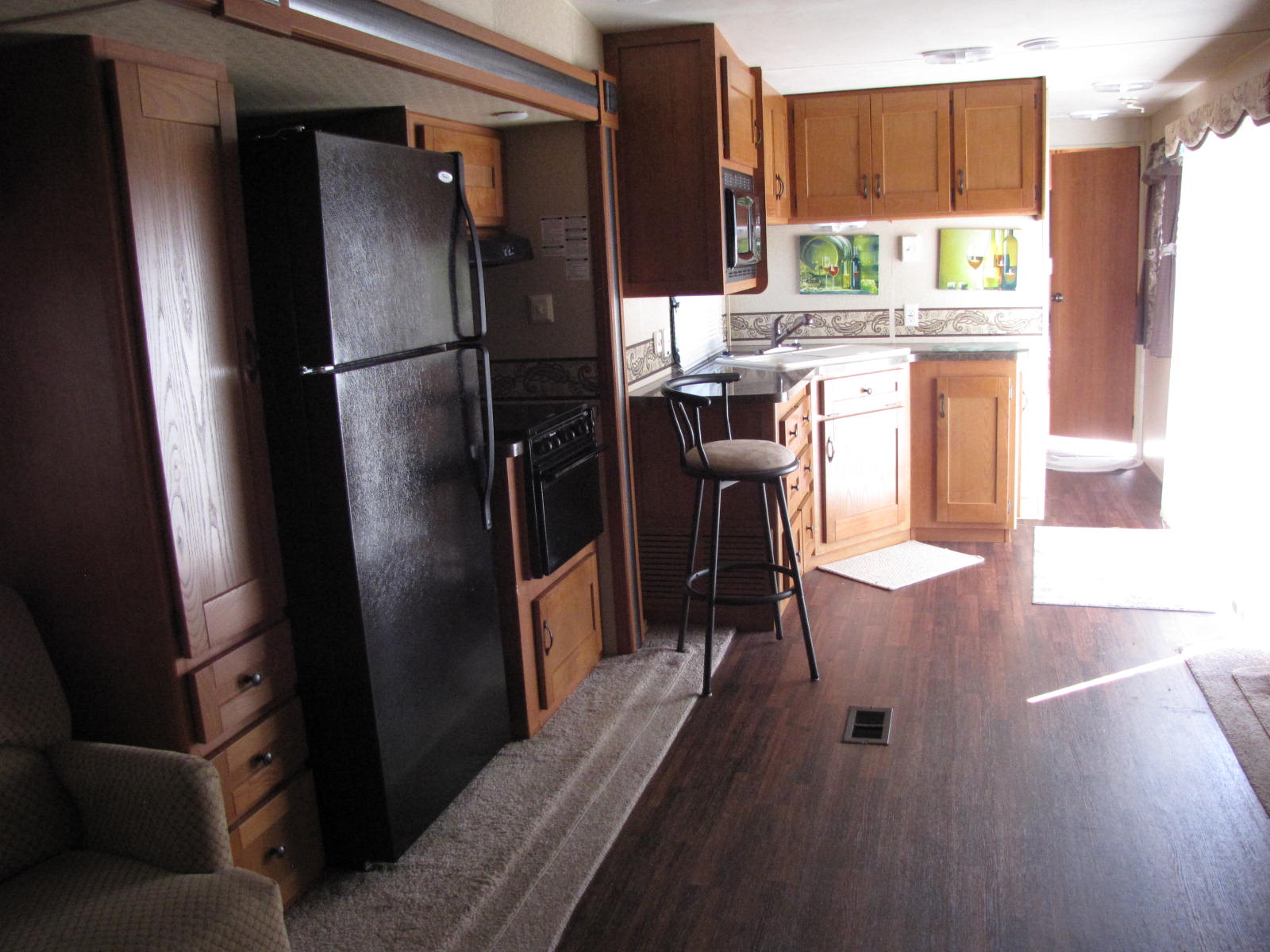 THIS PARK MODEL CAMPER HAS A U.V.W. OF 9093 POUNDS, TWO SLIDE OUTS AND AN AWNING. WALK THROUGH YOUR SLIDING GLASS DOORS INTO THE SPACIOUS, FULLY EQUIPPED KITCHEN WITH A FULL SIZE FRIDGE/FREEZER AND PANTRY. DINE AT YOUR UPGRADED HARDWOOD TABLE AND FOUR CHAIR SET. ENJOY THE COZY FIREPLACE IN THE ENTERTAINMENT CENTRE ON CHILLY NIGHTS. WILL SLEEP FOUR PEOPLE WITH A FLIP OUT SOFA/SLEEPER AND THE UP FRONT QUEEN MAIN BEDROOM WITH AN OUTSIDE ACCESS DOOR. THE DUAL ENTRANCE ENSUITE HAS A NEO ANGLE SHOWER AND LINEN CLOSET. COME FOR A LOOK AND CALL RV PETE AT 506-260-2666 FOR MORE DETAILS. FINANCING OPTIONS AVAILABLE O.A.C. WE ARE OPEN EVERYDAY TO BETTER SERVE YOU AND HAVE ZERO ADDED FEES!!!