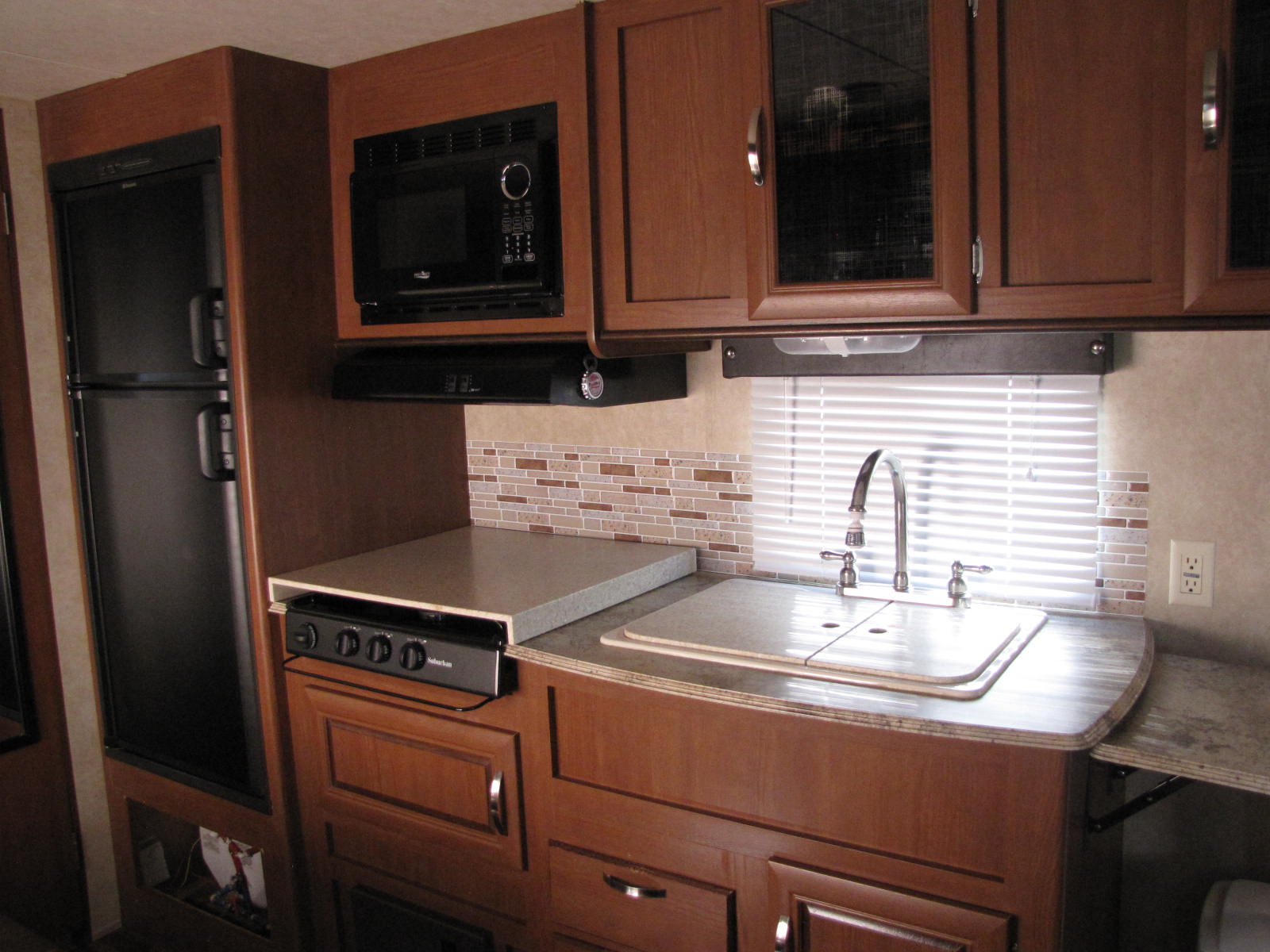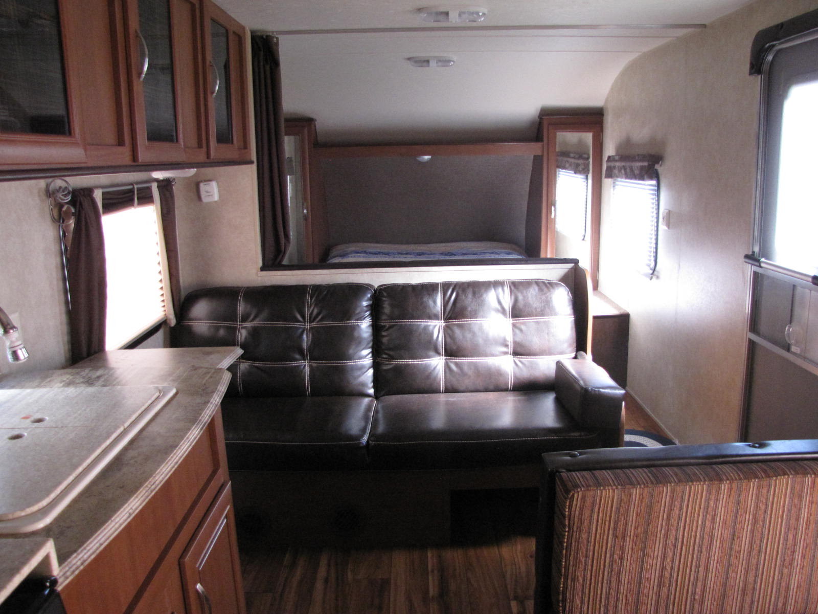 THIS MADE BY FOREST RIVER, QUALITY X LITE CAMPER IS IN GREAT CONDITION AND EASY TO TOW WITH A U.V.W. OF ONLY 4372 POUNDS. POWER AWNING, ELECTRIC TONGUE AND STABILIZER JACKS. NO CARPETING ON THE FLOORS, FABRIC WINDOW SHADES AND SOLID SURFACE COUNTER TOPS. THE KITCHEN COMES EQUIPPED WITH A DOUBLE SINK, A THREE BURNER STOVE WITH RANGE HOOD, A MICROWAVE, DOUBLE DOOR FRIDGE/FREEZER AND EXTENDABLE COUNTER TOP. WILL SLEEP SIX PEOPLE WITH A FOLD DOWN DINETTE, A JACK KNIFE SOFA/SLEEPER AND THE FRONT QUEEN MAIN BEDROOM. IN THE SPACIOUS ENSUITE IS A GLASS DOOR CORNER SHOWER, AND LINEN STORAGE. COME FOR A LOOK AND CALL RV PETE AT 506-260-2666 FOR MORE DETAILS. FINANCING OPTIONS AVAILABLE, O.A.C. WE ARE OPEN EVER DAY TO SERVE YOU BETTER AND HAVE ZERO ADDED FEES!!!