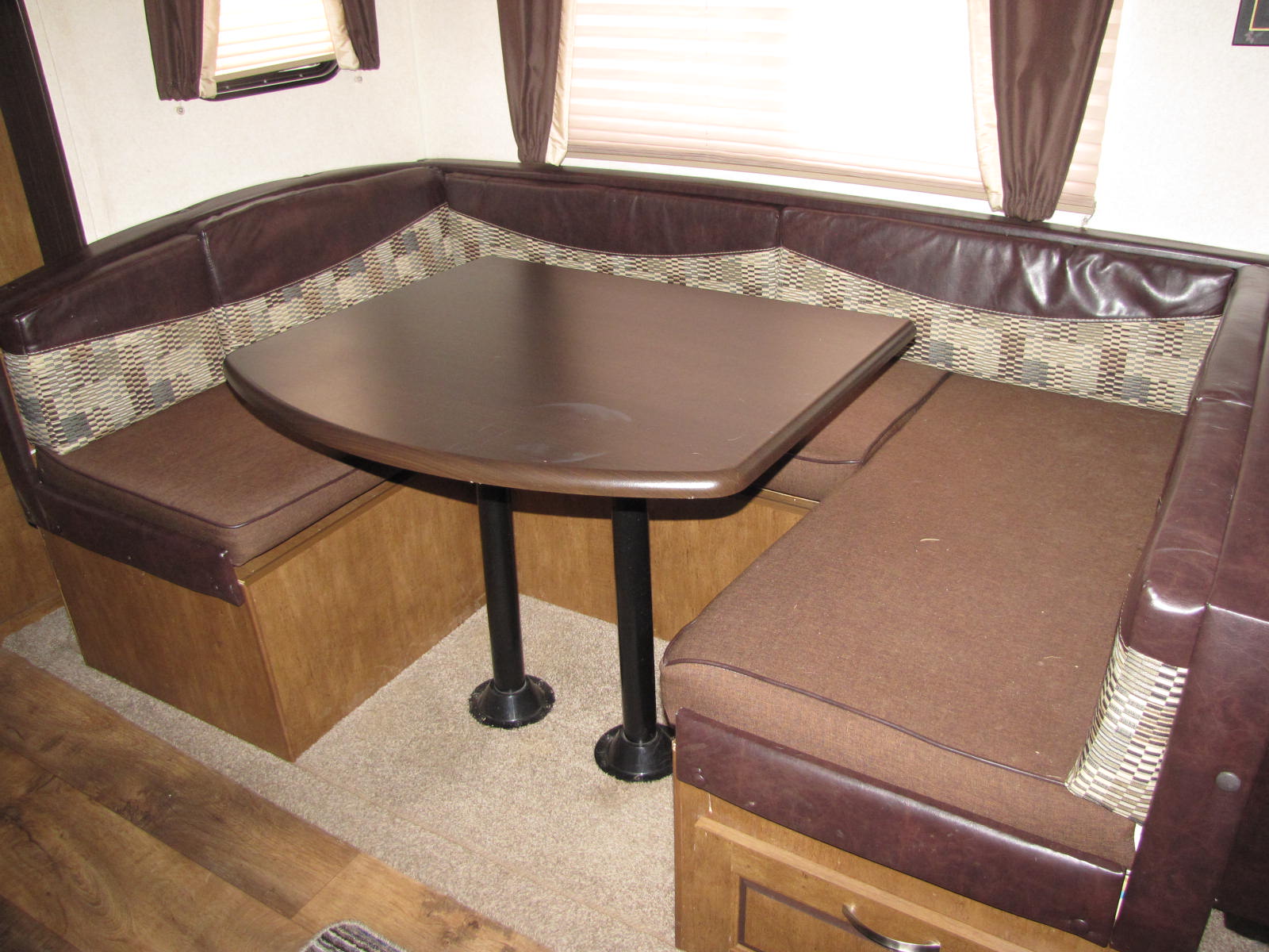 THIS MADE BY FOREST RIVER FAMILY CAMPER HAS A U.V.W. OF 7697 POUNDS, TWO SLIDE OUTS AND A POWER AWNING. THE OUTDOOR KITCHEN HAS A SINK, SINGLE DOOR FRIDGE AND REAR BUMPER MOUNTED SWING ARM BAR B QUE READY. FABRIC SHADES ON THE WINDOWS AND MINIMAL CARPETING. WILL SLEEP TEN PEOPLE WITH A FLIP OUT SOFA/SLEEPER, A FOLD DOWN DINETTE, FOUR IN THE REAR BUNK HOUSE THAT HAS LOTS OF STORAGE AND THE UP FRONT QUEEN MAIN BEDROOM. THE FULLY EQUIPPED KITCHEN HAS SOLID SURFACE COUNTER TOPS AND PANTRY STORAGE. IN THE ENSUITE IS A TUB/SHOWER. CALL RV PETE FOR MORE DETAILS AT 506-260-2666. FINANCING OPTIONS AVAILABLE, O.A.C. WE ARE OPEN EVERYDAY TO BETTER SERVE YOU AND HAVE NO HIDDEN FEES!