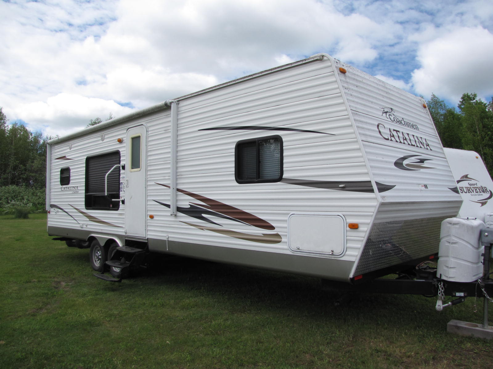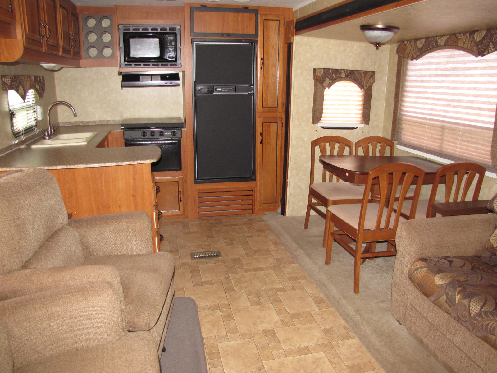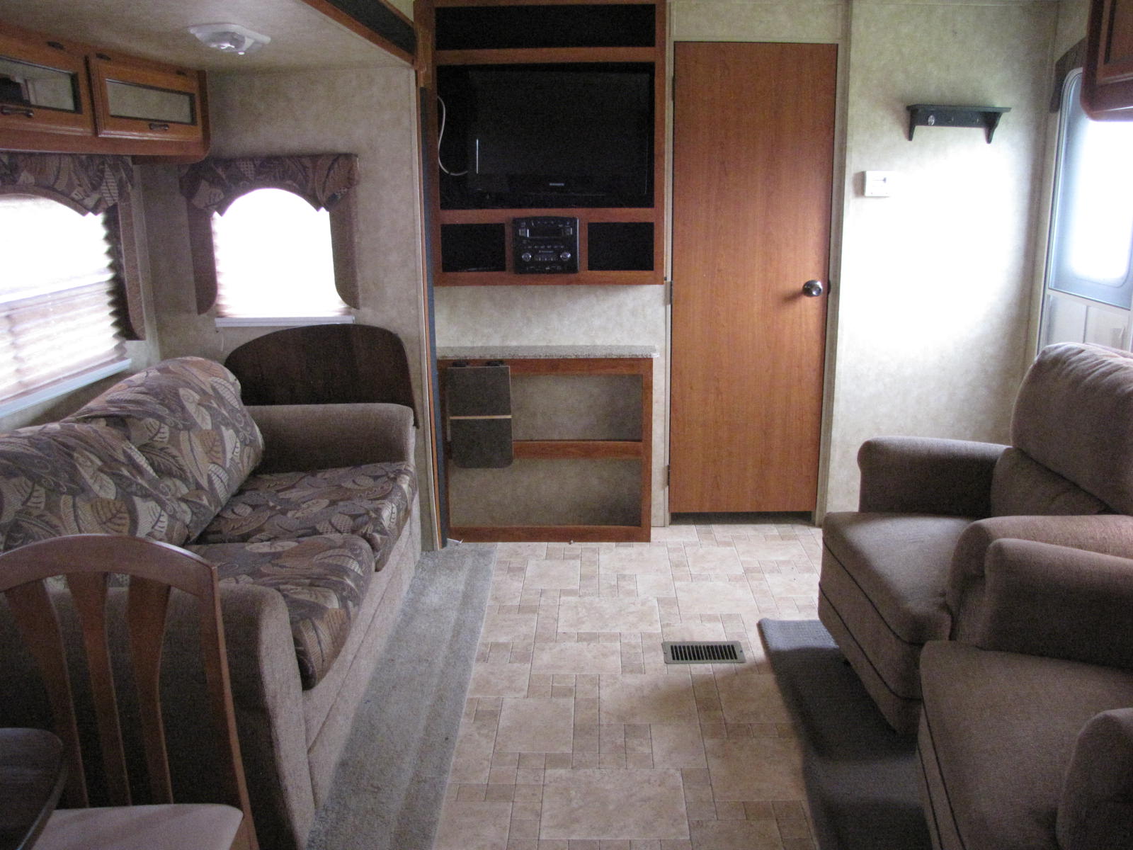 THIS WELL KEPT CAMPER HAS A U.V.W. OF 6633 POUNDS, ONE SLIDE OUT, A POWER AWNING AND POWER TONGUE JACK. WILL SLEEP FOUR PEOPLE WITH A HIDE A BED SOFA AND THE UP FRONT QUEEN MAIN BEDROOM WITH EXTRA CLOTHING CLOSET AND TV HOOK UP. THE FULLY EQUIPPED KITCHEN HAS SOLID SURFACE COUNTER TOPS, HARDWOOD CABINETRY AND PANTRY STORAGE. DINE AT YOUR UPGRADED HARDWOOD TABLE AND FOUR CHAIR SET. THE WALK THROUGH ENSUITE HAS A NEO ANGLE SHOWER AND A SEPARATE WATER CLOSET WITH LINEN STORAGE. COME FOR A LOOK AND CALL RV PETE FOR MORE DETAILS AT 506-260-2666. FINANCING OPTIONS AVAILABLE, O.A.C. WE ARE OPEN EVERYDAY TO BETTER SERVE YOU AND HAVE NO ADDED FEES TO OUR BUYERS!!!