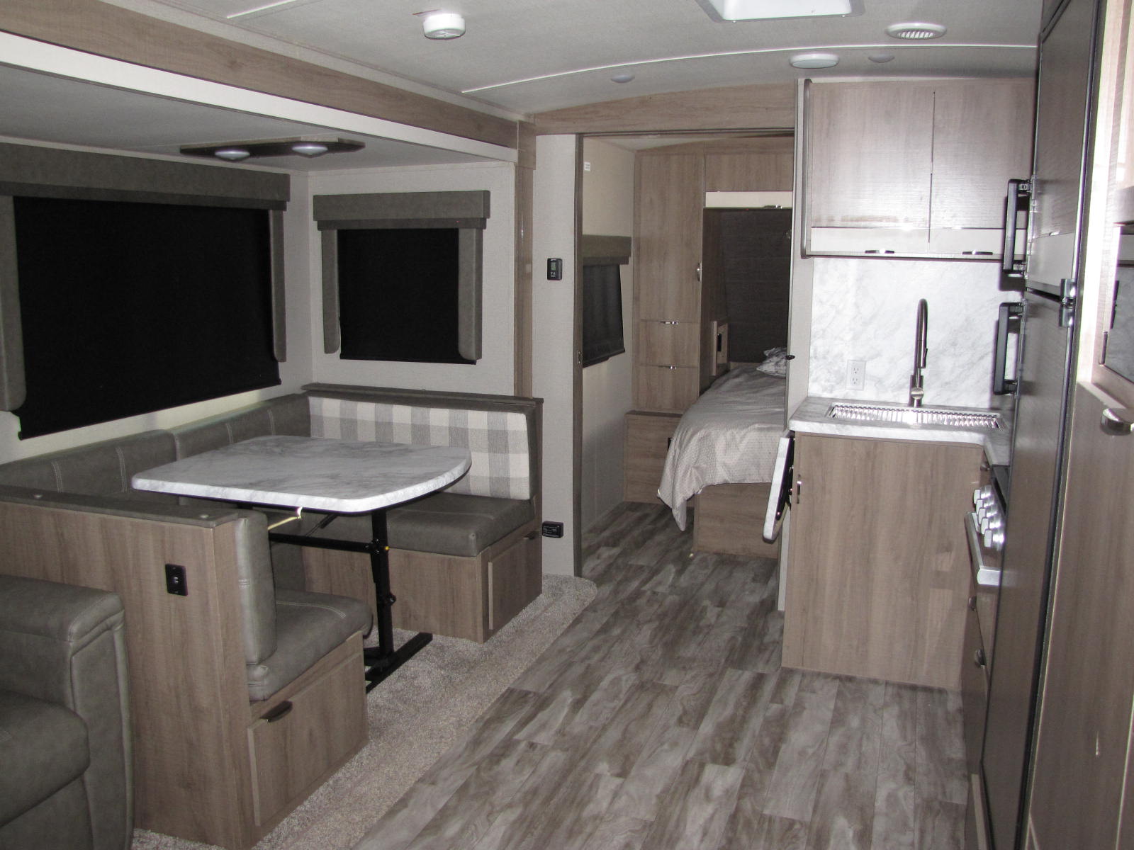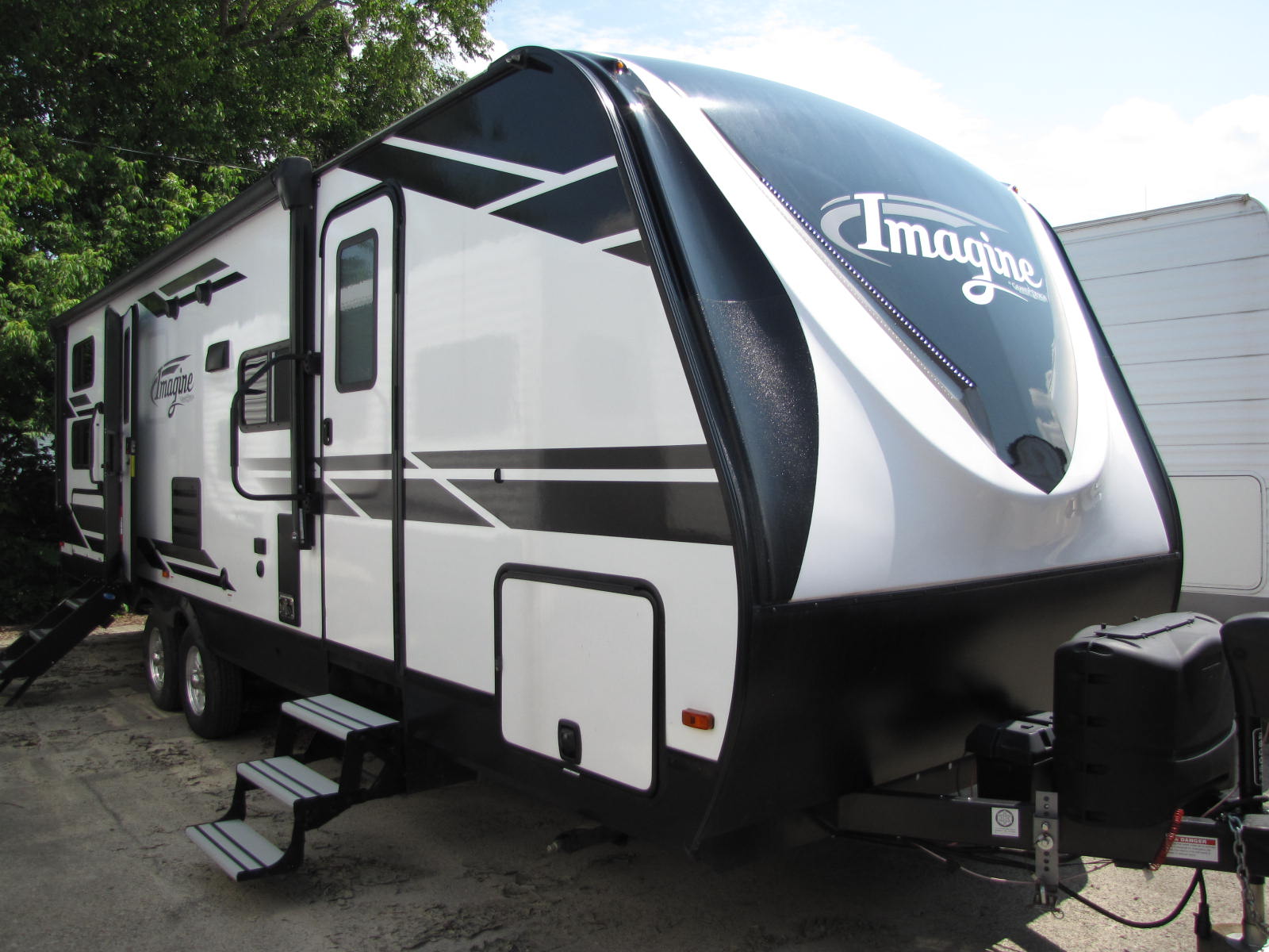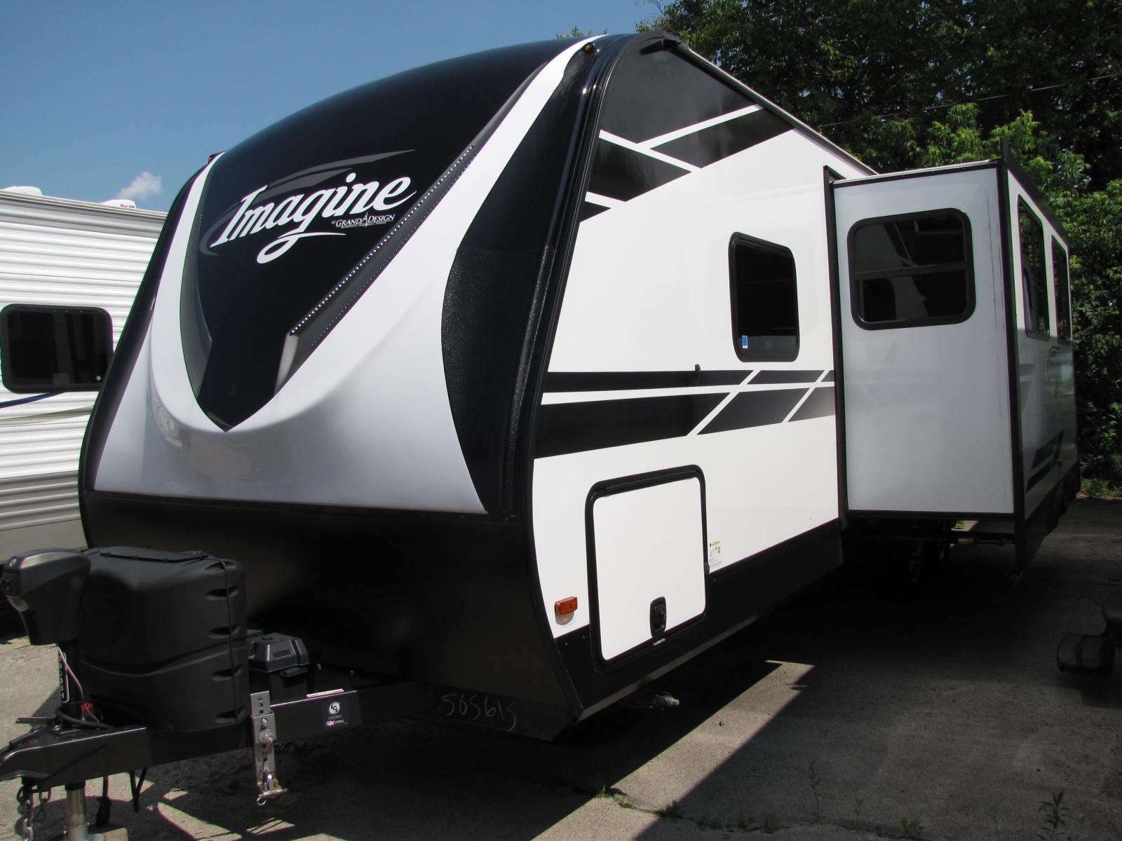 THIS IMAGINE BY GRAND DESIGN HAS AN EXTENDED TRANSFERRABLE WARRANTEE UNTIL 2027. SOLAR READY, POWER AWNING, ONE SLIDE OUT, POWER TONGUE JACK AND A UVW OF 6696 POUNDS. THE OUTDOOR KITCHEN HAS A SINGLE DOOR FRIDGE, AND 2 BURNER STOVE. THIS BEAUTY HAS A SPACIOUS AND FUNCTIONAL OPEN FLOOR PLAN. SLEEPS TEN WITH A JACK KNIFE SOFA/SLEEPER, A FOLD DOWN DINETTE, DOUBLE OVER DOUBLE REAR BUNKS AND THE FRONT QUEEN MAIN BEDROOM WITH A SLIDING BARN PRIVACY DOOR AND AN OUTSIDE ACCESS DOOR. QUALITY SOLID SURFACE COUNTERTOPS THROUGHOUT. THE KITCHEN IS FULLY EQUIPPED AND HAS A COUNTER EXTENSION. IN THE SPACIOUS ENSUITE IS A VANITY AND LINEN STORAGE. COME FOR A LOOK AND CALL RV PETE AT 506-260-2666 FOR MORE DETAILS. FINANCING OPTIONS AVAILABLE, O.A.C. WE ARE OPEN EVERYDAY TO BETTER SERVE YOU WITH NO HIDDEN FEES!!