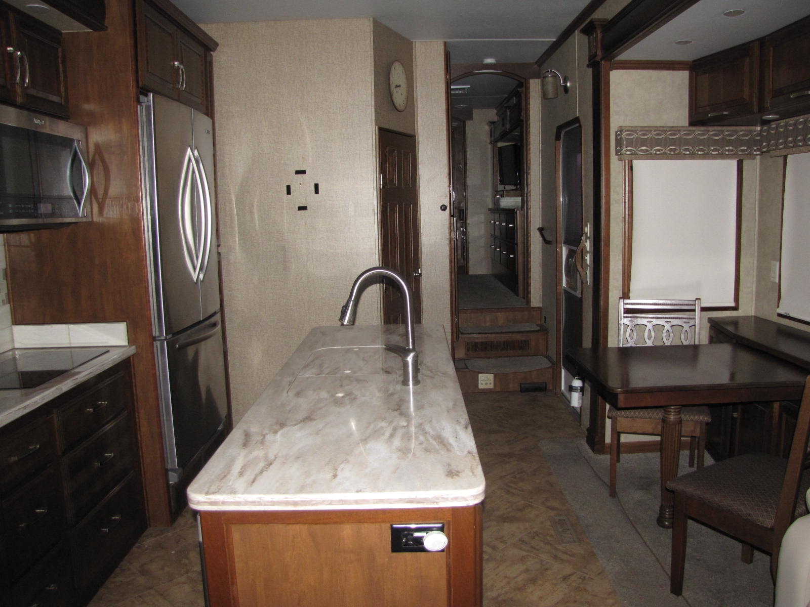 PRICE drop!!! RV VALUATION IS OVER $79,900.00!!! BUILT FOR FULL FOUR SEASON LIVING, THIS LUXURY FIFTH WHEEL HAS 4 SLIDE OUTS, 2 POWER AWNINGS, BLACKOUT PRIVACY WINDOWS AND AN OUTSIDE ENTERTAINMENT SYSTEM. INSIDE THE FRONT DOOR IS A CONVENIENT COST CLOSET. THIS UNIT HAS A CENTRAL VACUUM SYSTEM AND ONE TOUCH DAY/NIGHT SHADES. IN THE MAIN LIVING AREA IS A WATER CLOSET WITH WASHER/DRYER HOOK UPS. THE KITCHEN COMES EQUIPPED WITH A 3 DOOR FRIDGE/FREEZER, A 2 BURNER CONVECTION COOK TOP, A CONVECTION/MICROWAVE OVEN, A DISHWASHER IN THE ISLAND AND SOLID SURFACE COUNTER TOPS. WILL SLEEP 4 PEOPLE WITH A SOFA/SLEEPER IN THE LIVING AREA AND A KING MAIN BEDROOM IN THE FRONT. THE WALK THROUGH PRIVATE ENSUITE OFF OF THE MAIN BEDROOM HAS DOUBLE SINKS, A DOUBLE SHOWER WITH A SEAT AND LINEN STORAGE. PAST THIS ENSUITE IS A WALK IN CLOSET. COME SEE THIS BEAUTY AND CALL RV PETE FOR MORE DETAILS AT 506-260-2666. FINANCING OPTIONS AVAILABLE, O.A.C. OPEN EVERYDAY!