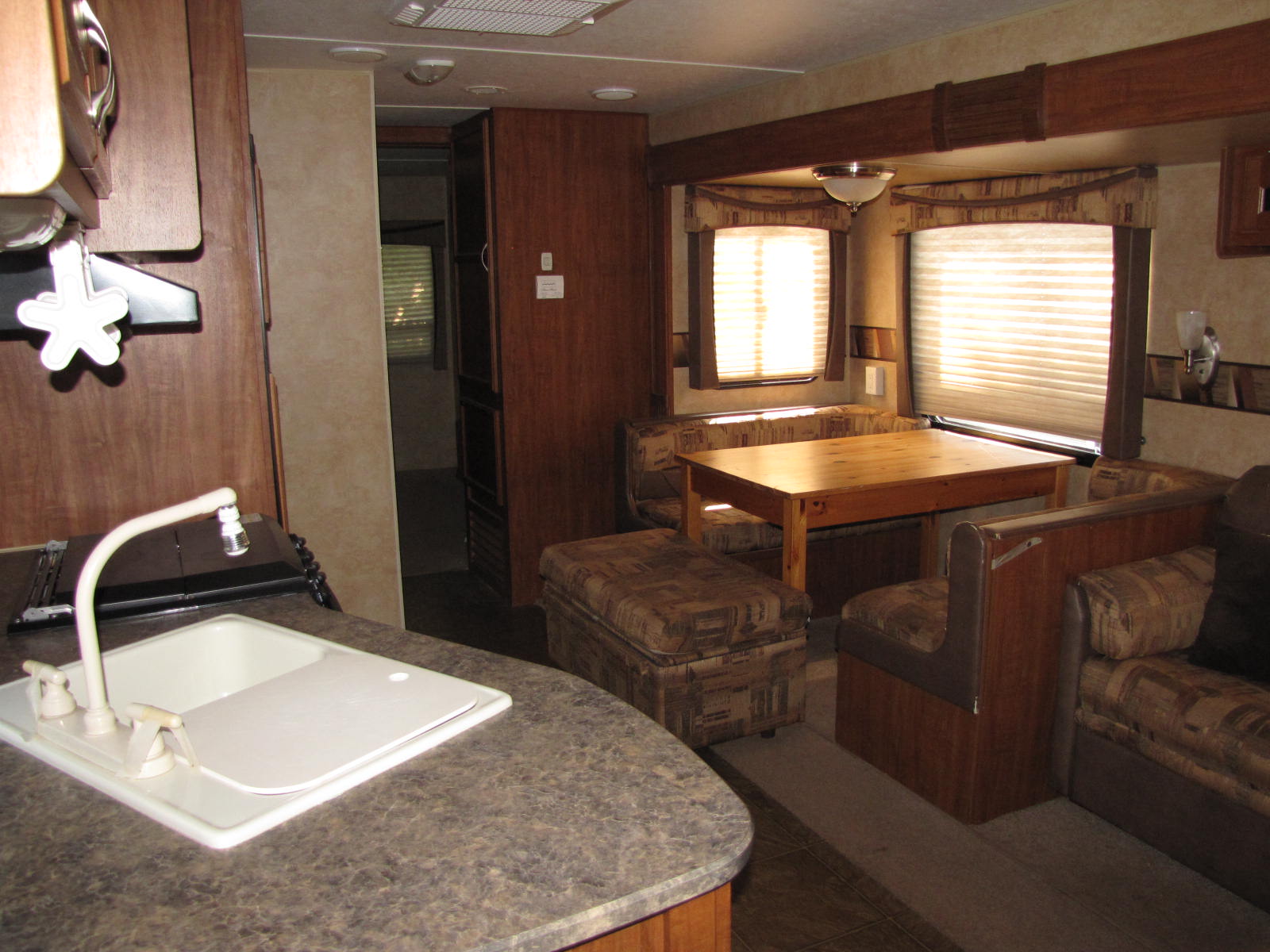 THIS QUALITY FAMILY CAMPER IS A SUPER LITE, MADE BY JAYCO WITH A U.V.W. OF 7590 POUNDS. TWO SLIDE OUTS. IN THE OUTDOOR KITCHEN IS A TWO BURNER STOVE, A FRIDGE/FREEZER, SINK AND STORAGE. INSIDE HAS HARDWOOD CABINETRY AND A SPIN AROUND TV INTO THE MAIN BEDROOM. THE FULLY EQUIPPED KITCHEN HAS PANTRY STORAGE. WILL SLEEP TEN PEOPLE WITH THE UP FRONT QUEEN MAIN BEDROOM, A FOLD DOWN DINETTE AND A FLIP OUT SOFA/SLEEPER. WILL SLEEP FOUR IN THE SPACIOUS BUNK HOUSE WITH THREE BUNKS AND A TUCK AWAY TRUNDLE BED. KEEP THE DIRT TO A MINIMAL WITH THE CONVENIENT SECOND ENTRANCE INTO THE ENSUITE THAT HAS A TUB SHOWER. COME FOR A LOOK AND CALL RV PETE FOR MORE DETAILS AT 506-260-2666. FINANCING OPTIONS AVAILABLE, O.A.C. WE ARE OPEN EVERYDAY TO SERVE YOU BETTER!!