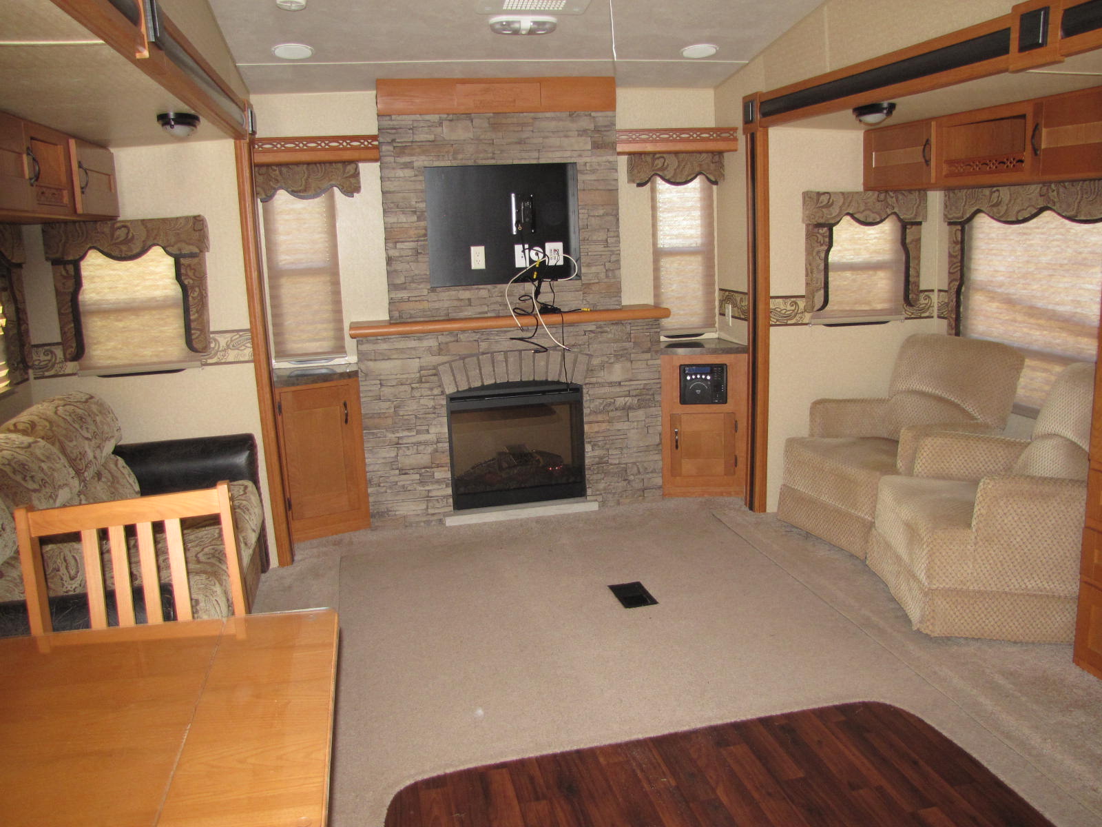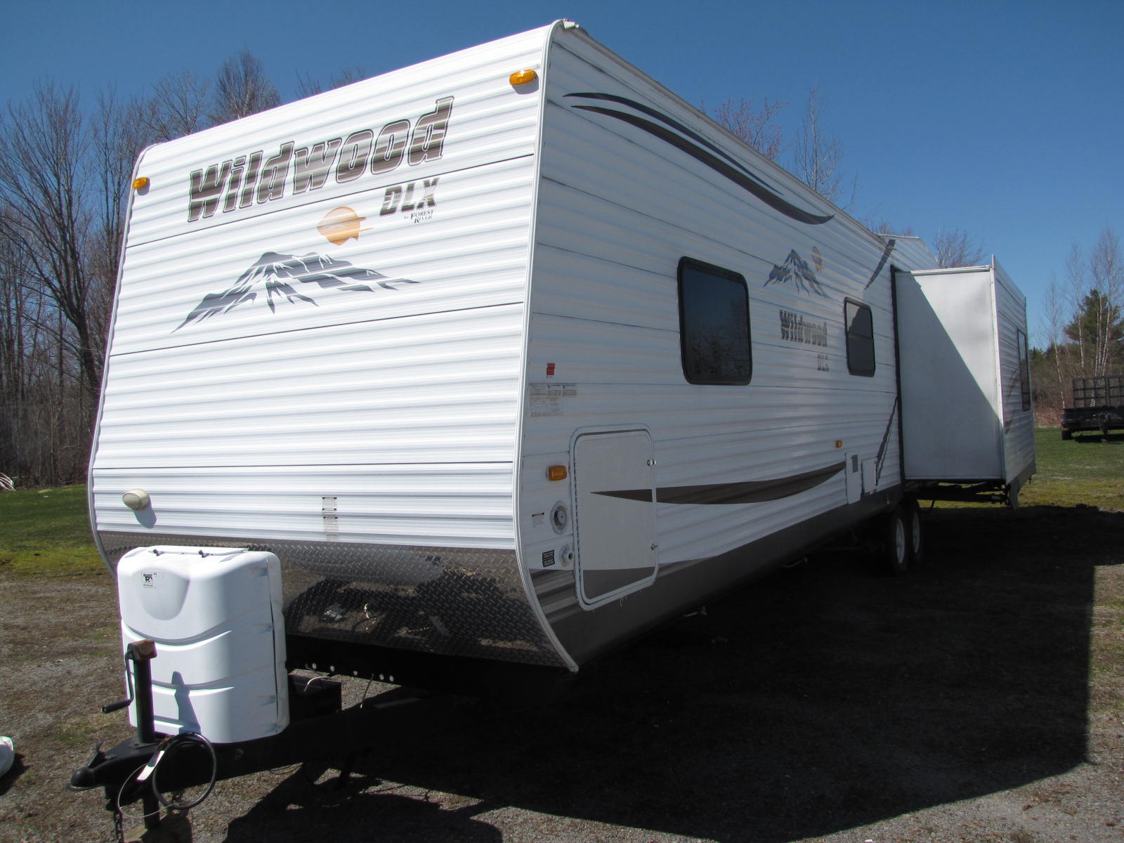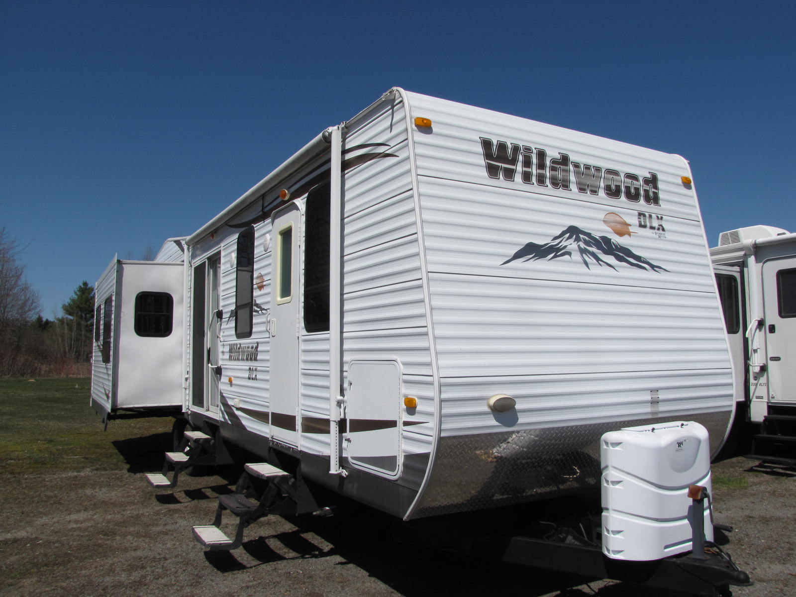 THIS PARK MODEL CAMPER HAS A U.V.W. OF 9093 POUNDS, TWO SLIDE OUTS AND AN AWNING. WALK THROUGH YOUR SLIDING GLASS DOORS INTO THE SPACIOUS, FULLY EQUIPPED KITCHEN WITH A FULL SIZE FRIDGE/FREEZER AND PANTRY. DINE AT YOUR UPGRADED HARDWOOD TABLE AND FOUR CHAIR SET. ENJOY THE COZY FIREPLACE IN THE ENTERTAINMENT CENTRE ON CHILLY NIGHTS. WILL SLEEP FOUR PEOPLE WITH A FLIP OUT SOFA/SLEEPER AND THE UP FRONT QUEEN MAIN BEDROOM WITH AN OUTSIDE ACCESS DOOR. THE DUAL ENTRANCE ENSUITE HAS A NEO ANGLE SHOWER AND LINEN CLOSET. COME FOR A LOOK AND CALL RV PETE AT 506-260-2666 FOR MORE DETAILS. FINANCING OPTIONS AVAILABLE O.A.C. WE ARE OPEN EVERYDAY TO BETTER SERVE YOU AND HAVE ZERO ADDED FEES!!!