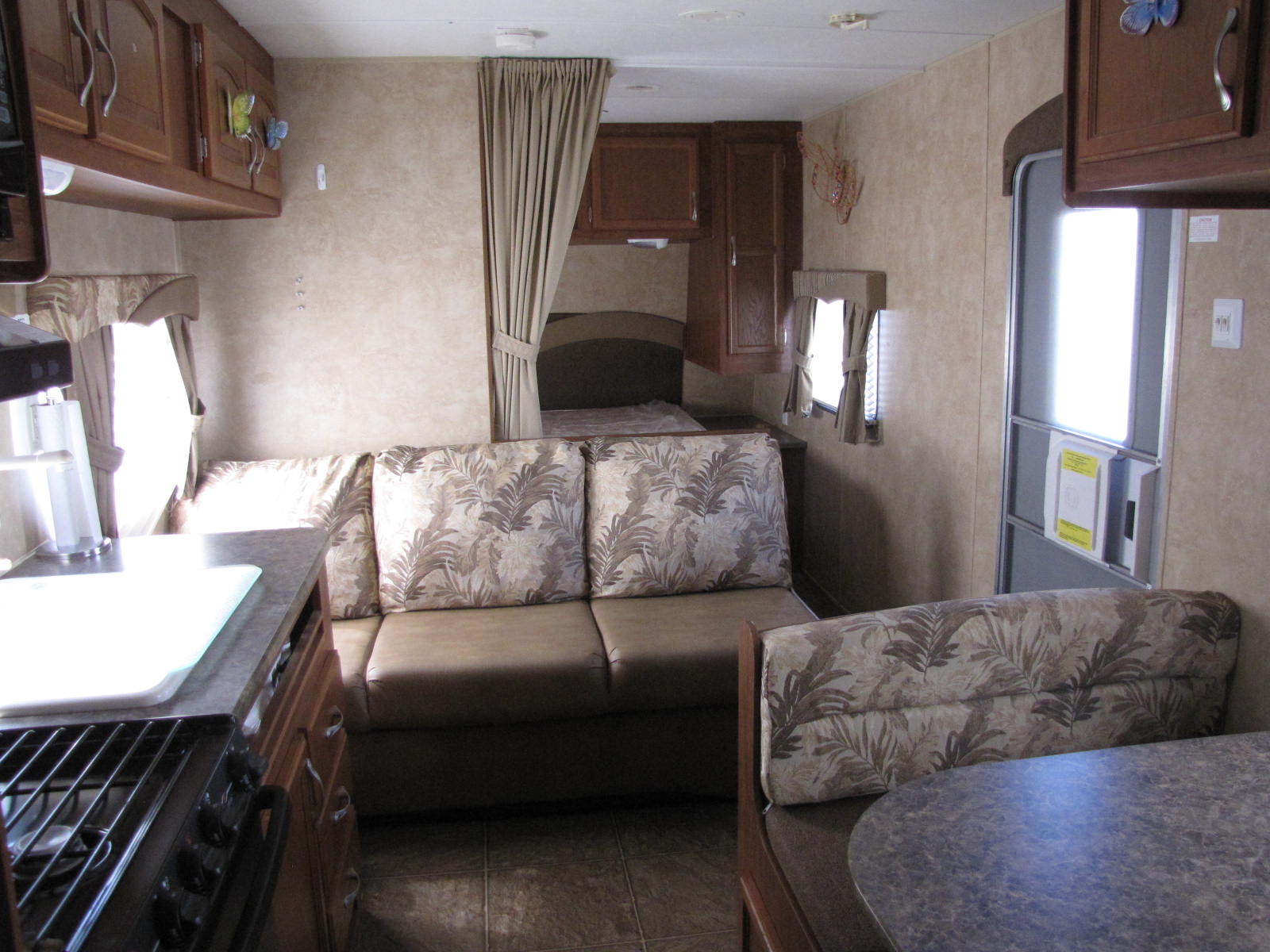 THIS EASY TO TOW FAMILY CAMPER HAS AN AWNING AND A U.V.W. OF ONLY 4725 POUNDS. WILL SLEEP UP TO NINE PEOPLE WITH THE UP FRONT QUEEN BEDROOM, A JACK KNIFE SOFA SLEEPER, A FOLD DOWN DINETTE, AND A SINGLE OVER DOUBLE BUNK IN THE BACK. THE FULLY EQUIPPED KITCHEN HAS A CONVENIENT DOUBLE SINK. IN THE ENSUITE IS A TUB/SHOWER WITH THE WASH BASIN OUTSIDE THE DOOR. COME FOR A LOOK AND CALL RV PETE FOR MORE DETAILS AT 506-260-2666. FINANCING OPTIONS AVAILABLE, O.A.C. WE ARE OPEN EVERYDAY TO BETTER SERVE YOU AND HAVE ZERO ADDED FEES.