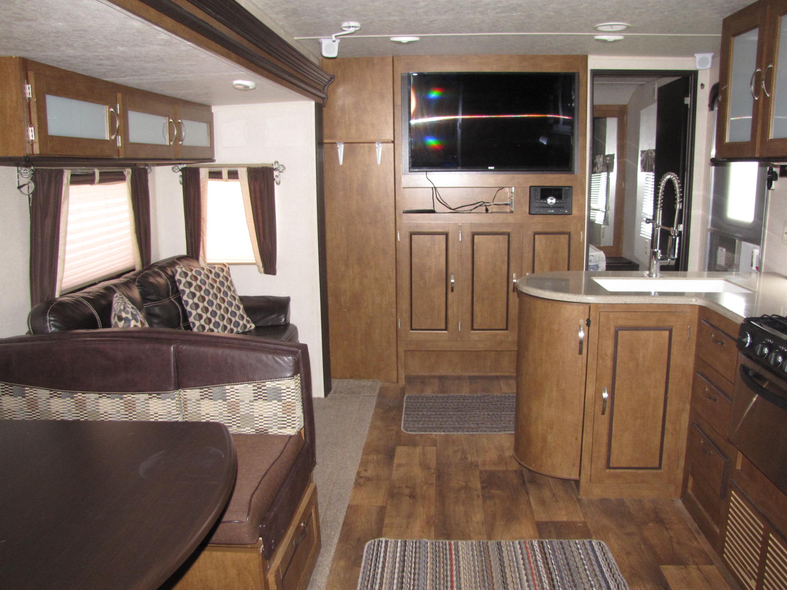 THIS MADE BY FOREST RIVER FAMILY CAMPER HAS A U.V.W. OF 7697 POUNDS, TWO SLIDE OUTS AND A POWER AWNING. THE OUTDOOR KITCHEN HAS A SINK, SINGLE DOOR FRIDGE AND REAR BUMPER MOUNTED SWING ARM BAR B QUE READY. FABRIC SHADES ON THE WINDOWS AND MINIMAL CARPETING. WILL SLEEP TEN PEOPLE WITH A FLIP OUT SOFA/SLEEPER, A FOLD DOWN DINETTE, FOUR IN THE REAR BUNK HOUSE THAT HAS LOTS OF STORAGE AND THE UP FRONT QUEEN MAIN BEDROOM. THE FULLY EQUIPPED KITCHEN HAS SOLID SURFACE COUNTER TOPS AND PANTRY STORAGE. IN THE ENSUITE IS A TUB/SHOWER. CALL RV PETE FOR MORE DETAILS AT 506-260-2666. FINANCING OPTIONS AVAILABLE, O.A.C. WE ARE OPEN EVERYDAY TO BETTER SERVE YOU AND HAVE NO HIDDEN FEES!