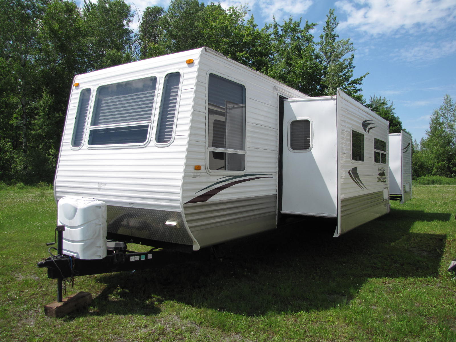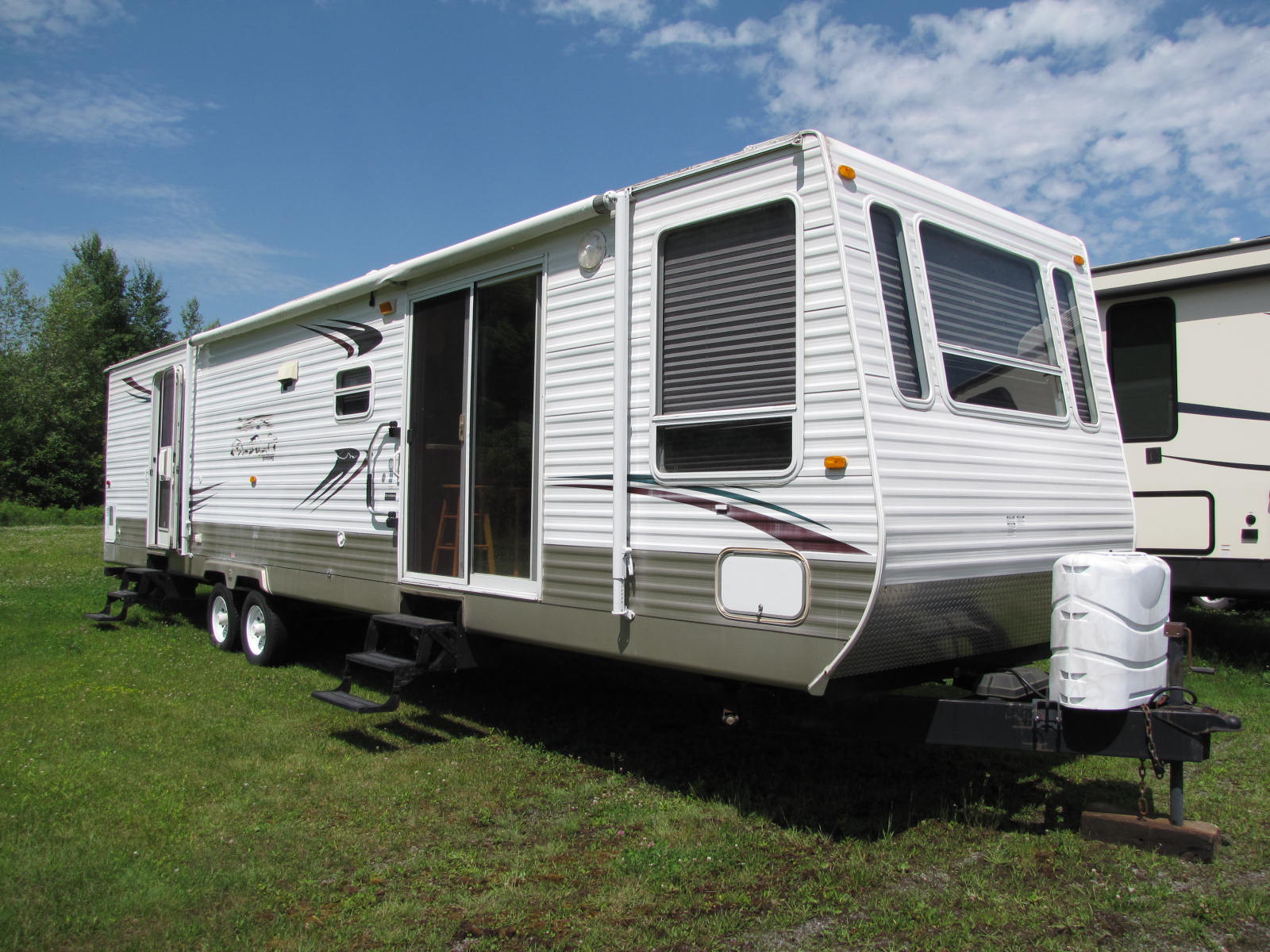 THIS PARK MODEL IS IN GREAT CONDITION!! TWO SLIDE OUTS AND A HUGE PATIO AWNING. WALKING IN THROUGH YOUR SLIDING GLASS PATIO DOORS THIS FAMILY CAMPER IS SPACIOUS AND BRIGHT. WILL SLEEP EIGHT WITH TWO PULL OUT SOFA/SLEEPERS, A FOLD DOWN DINETTE AND THE REAR QUEEN MAIN BEDROOM. THE FRONT SOFA/SLEEPER HAS A FOLDING CURTAIN THAT MAKES THIS AREA INTO A PRIVATE SECOND BEDROOM. THE MAIN BEDROOM HAS LOTS OF CLOTHING STORAGE AND A SEPARATE OUTDOOR ENTRANCE. THE FULLY EQUIPPED KITCHEN HAS A FULL SIZE FRIDGE/FREEZER AND PANTRY STORAGE. IN THE WALK THROUGH ENSUITE IS A NEO ANGLE SHOWER, VANITY AND MORE STORAGE. THE WATER CLOSET IS SELF CONTAINED FOR GOOD PRIVACY. CALL RV PETE FOR MORE DETAILS AT 506-260-2666. FINANCING OPTIONS AVAILABLE, O.A.C. WE ARE OPEN EVERYDAY TO BETTER SERVE YOU AND HAVE NO HIDDEN FEES!!!