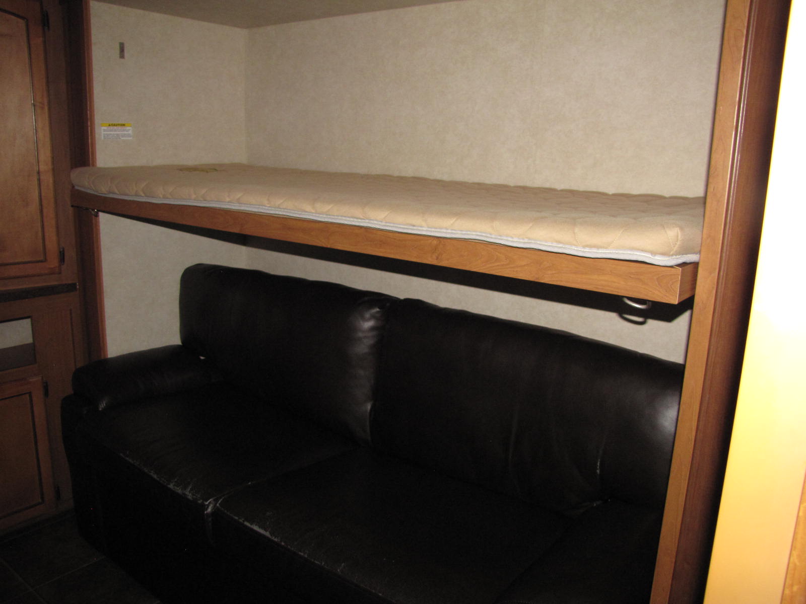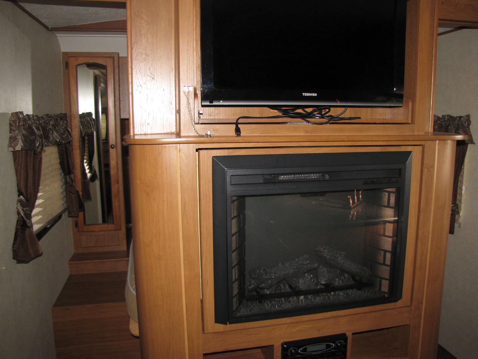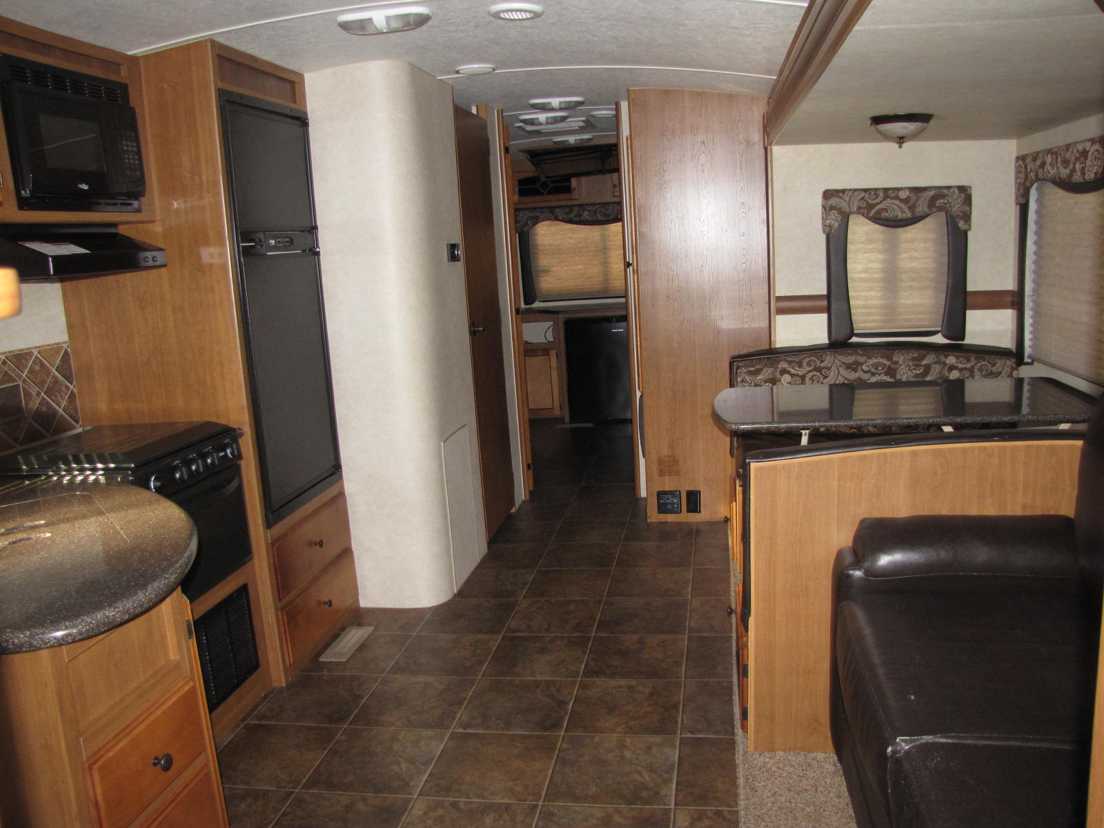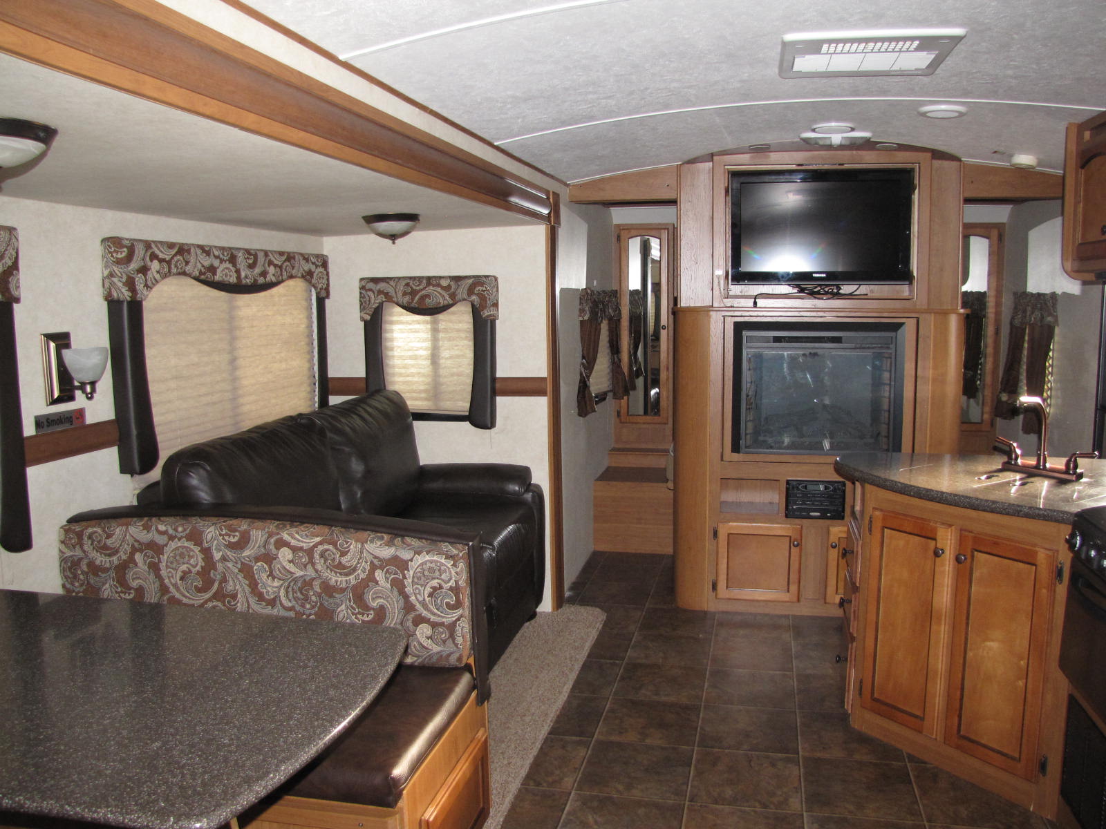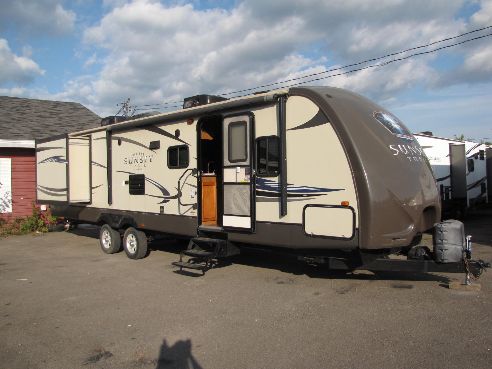 THIS FAMILY CAMPER IS IN VERY GOOD CONDITION! THREE SLIDE OUTS, POWER AWNING, ELECTRIC STABILIZER JACKS AND THE U.V.W. IS 7338 POUNDS. FABRIC WINDOW SHADES THROUGHOUT, MINIMAL CARPETING AND QUALITY SOLID SURFACE COUNTER TOPS. THE FULLY EQUIPPED KITCHEN HAS A PANTRY. IN THE ENTERTAINMENT CENTRE IS A TV AND FIREPLACE THAT WILL SPIN AROUND INTO THE MAIN BEDROOM. WILL SLEEP TWELVE PEOPLE WITH A FOLD DOWN DINETTE, JACK KNIFE SOFA, THE UP FRONT QUEEN MAIN BEDROOM AND SIX MORE IN THE REAR BUNK HOUSE. TWO JACK KNIFE SOFAS AND TWO SINGLE BUNKS IN THE BUNKHOUSE AND A SINGLE DOOR FRIDGE FREEZER AND A SECOND TV IN THE ENTERTAINMENT CENTRE. COME FOR A LOOK AND CALL RV PETE FOR MORE DETAILS AT 506-260-2666. FINANCING OPTIONS AVAILABLE, O.A.C. WE ARE OPEN EVERYDAY TO BETTER SERVE YOU AND HAVE ZERO HIDDEN FEES!!!